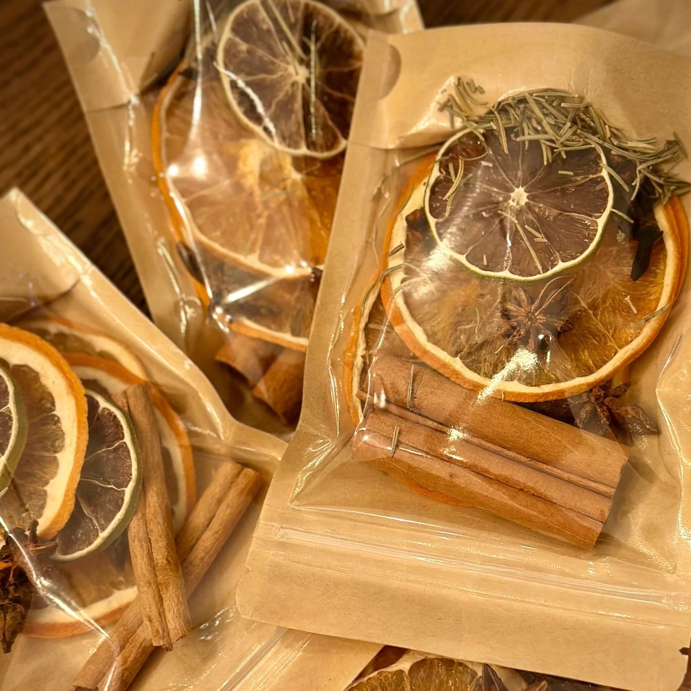 Bring warmth to your home the old-fashioned way. Our simmer pot mixes are handcrafted with real dried fruits, herbs, and spices grown and sourced with care—no artificial fragrances, dyes, or chemicals. Just add water, simmer gently, and let your home fill with a naturally cozy aroma.